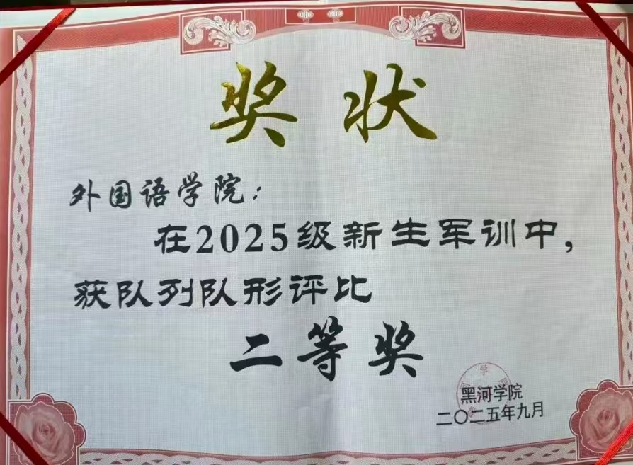 在为期两周的军训中,外国语学院学子表现突出,斩获多项重要奖项:作风纪律评比一等奖、分列式最佳表演奖、军训大合唱二等奖、队列队形二等奖。这些荣誉不仅是对学子们刻苦训练、严守纪律的肯定,更充分展现了学院强大的集体凝聚力与优良的精神风貌,也印证了大学生自律管理委员会在组织协调工作中的高效与担当。