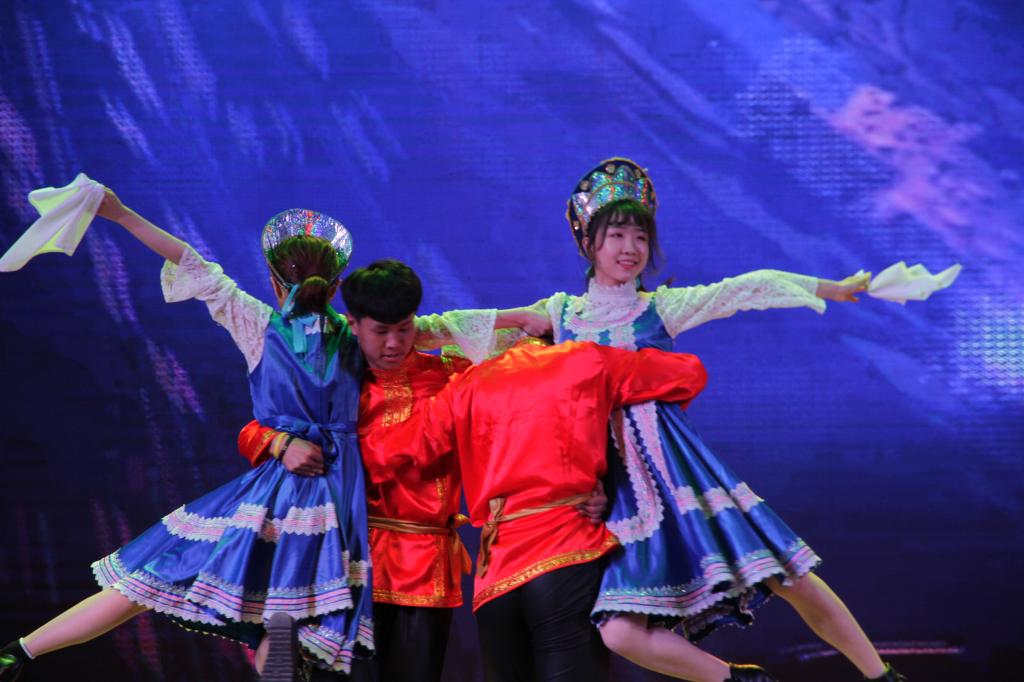开幕式上我院学生给大家呈现了各种具有外语文化艺术色彩的节目,其中由张超、吴邦倩等表演的《英俄影视配音》、张振、杜祎等表演的俄语戏剧《变色龙》以及由曹贺迪、刘畅等表演的英文戏剧《美女与野兽》得到了观众的热烈掌声,舞蹈、朗诵、Rap等节目也深得观众的喜爱。不仅学生们在舞台上大放异彩,教师也为大家带来精彩的表演,高航老师、徐洪亮老师分别带来的俄罗斯歌曲《金色阳光》与《马儿》。我院学子在观看精彩绝伦的表演的同时中感受着外语文化艺术的魅力,这是一场全新的文化体验。