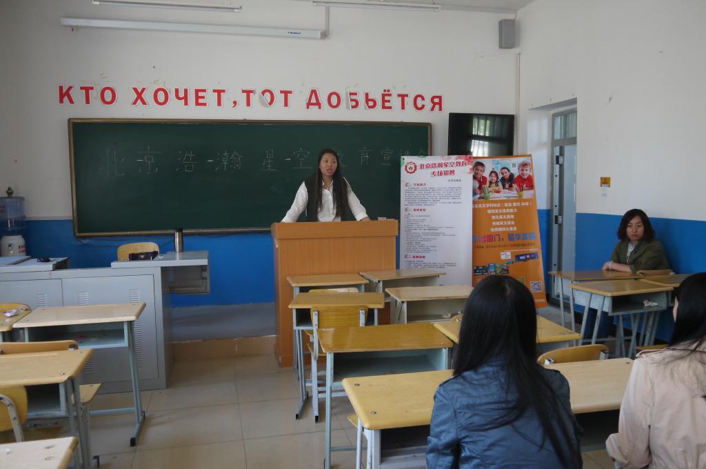 2017年5月15日中午12时,“北京浩瀚星空教育”宣讲会在我院俄语楼109室召开。14级英语系同学参加了本次宣讲会。