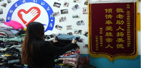 自此新生来临之际,为方便新生和家长及时免费领取所需物品,爱心小屋全天开放。因近期气温下降,一些南方同学未及时准备应季衣物,可到此领取保暖衣物以防感冒。同时团队成员也积极参与到迎接新生的队伍中为新生及家长提供服务。
