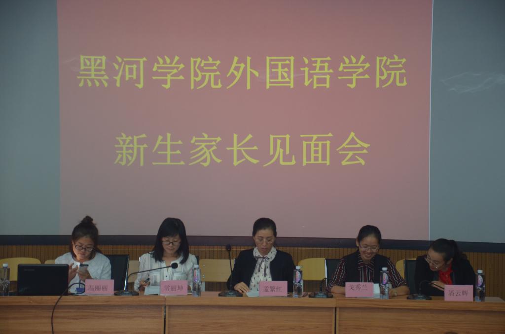 为与新生家长更好地沟通,引导新生尽快融入大学生活,外国语学院于2017年8月26日14时整在俄语楼小剧场召开了新生家长见面会。出席本次会议的有外国语学院党总支书记孟繁红,副院长戈秀兰,党总支副书记常丽坤,团总支书记潘云辉,17级新生辅导员温丽丽老,以及17级各班班主任老师和各位家长。