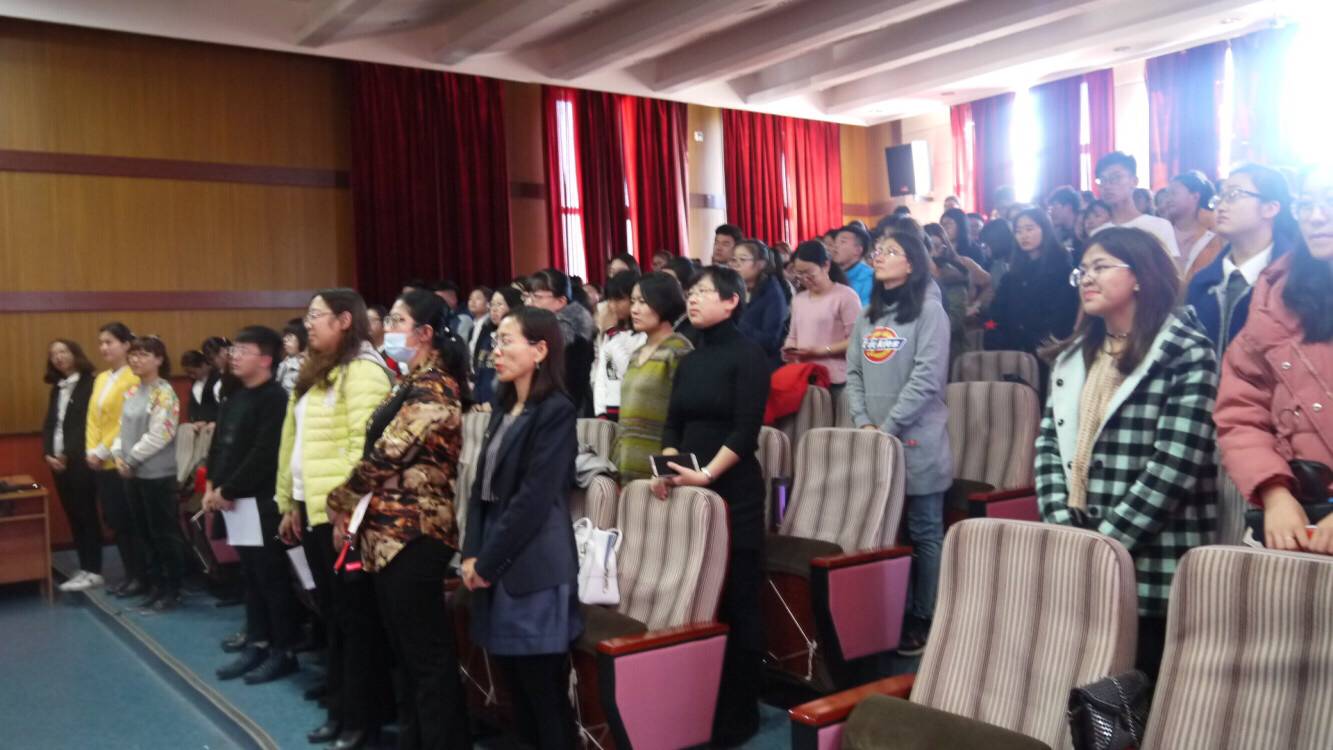 2017年10月30日中午12时30分,外国语学院党总支组织全院辅导员、班主任老师以及各班级团支书、组宣委观摩由王岩老师指导的15级英本3班及王欣欣老师指导的16级英本1班的关于学习党的十九大精神主题班会。