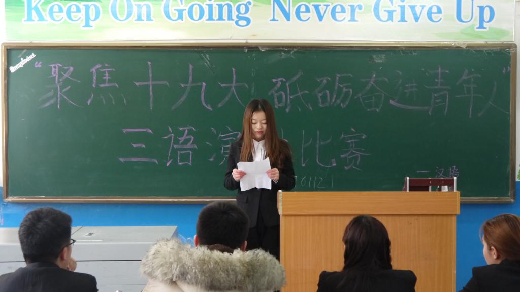 本次比赛设有进行汉语,俄语和英语三个考场,每个考场有四位评委进行评比打分。此次比赛共吸引了来自不同年级的76名学生参加,每位参赛选手自备稿件,演讲限时三分钟。比赛现场,选手们准备充分,神态自若,声音高亢,思维逻辑缜密,有理有据。经过评委的认真评判,最终24人脱颖而出,进入决赛。