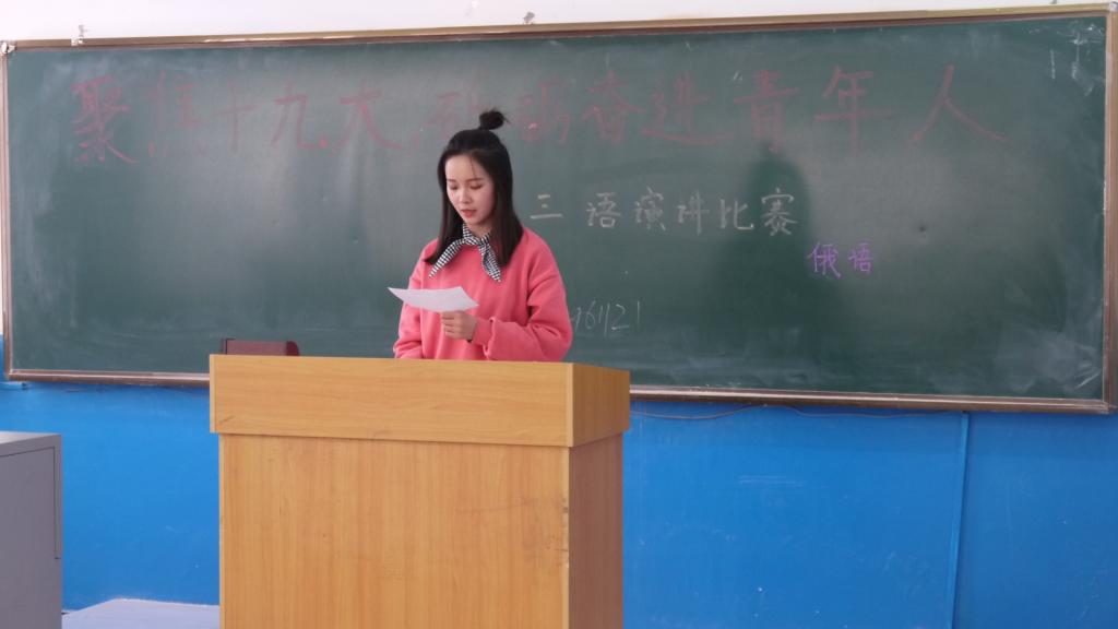 2017年11月22日12时40分,外国语学院于俄语楼举行了“聚焦十九大,砥砺奋进青年人”三语演讲比赛。此次比赛由外国语学院创新创业部承办。