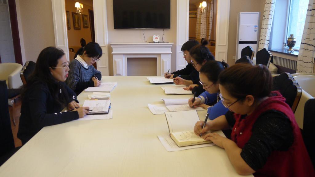 2017年12月20日14时,外国语学院在俄语楼314召开年终学生工作总结会议。会议由党总支书记孟繁红主持召开,副书记常丽坤、学工办主任潘云辉、辅导员祁立伟、温丽丽、郗亚凡参加会议。