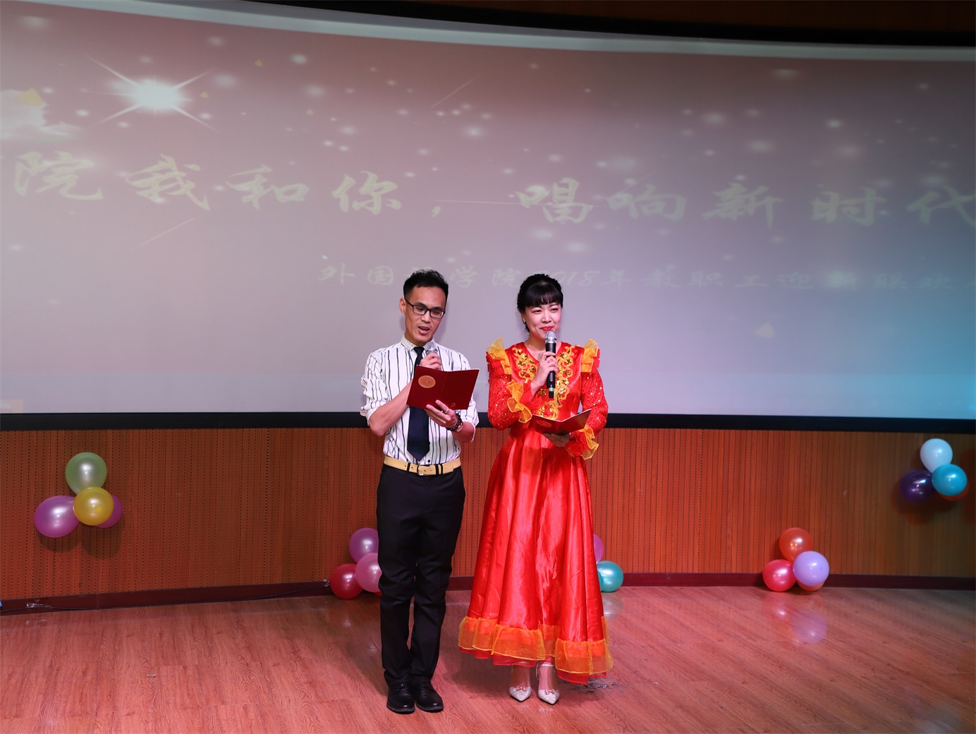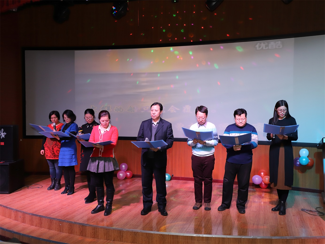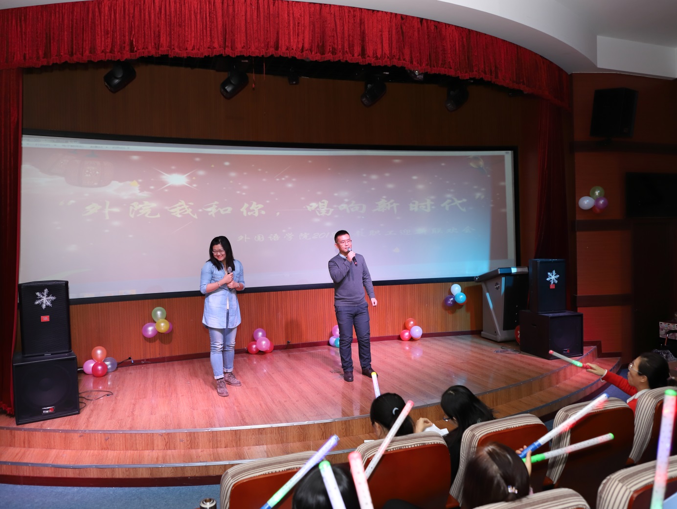 收藏阳光染红灯笼,给新年多一点温暖;摘下彩虹点燃烟花,给新年多一点浪漫;送出问候包上祝福,给节日多一点音符。在这新年来临之际,2017年12月25日下午,主题为“外院我和你,唱响新时代”的外国语学院2018年新年联欢会在俄语楼小剧场隆重举行,外国语学院院长姜占民、书记孟繁红、副院长戈秀兰、副书记常丽坤以及全体教职工参加了本次联欢会。