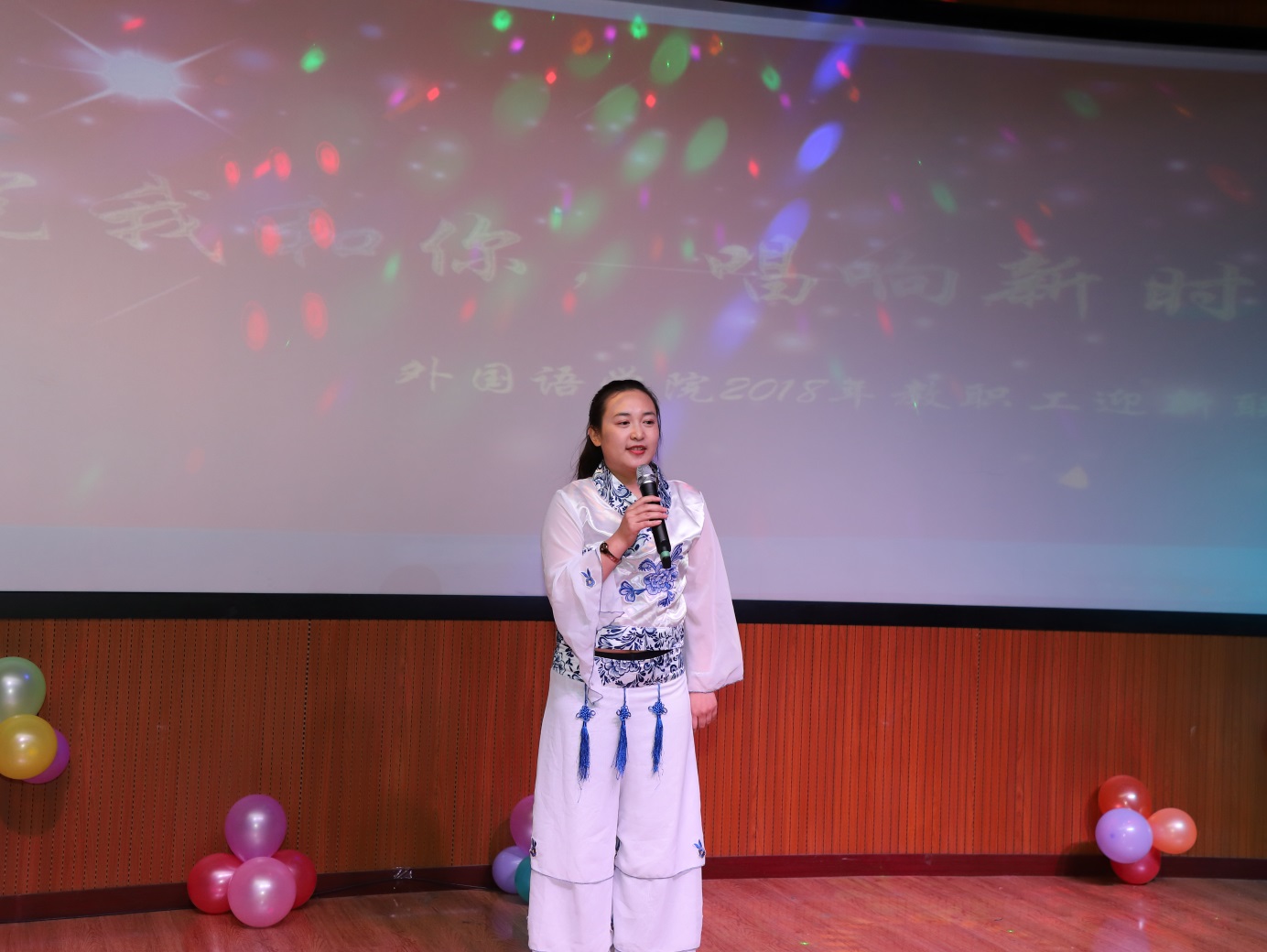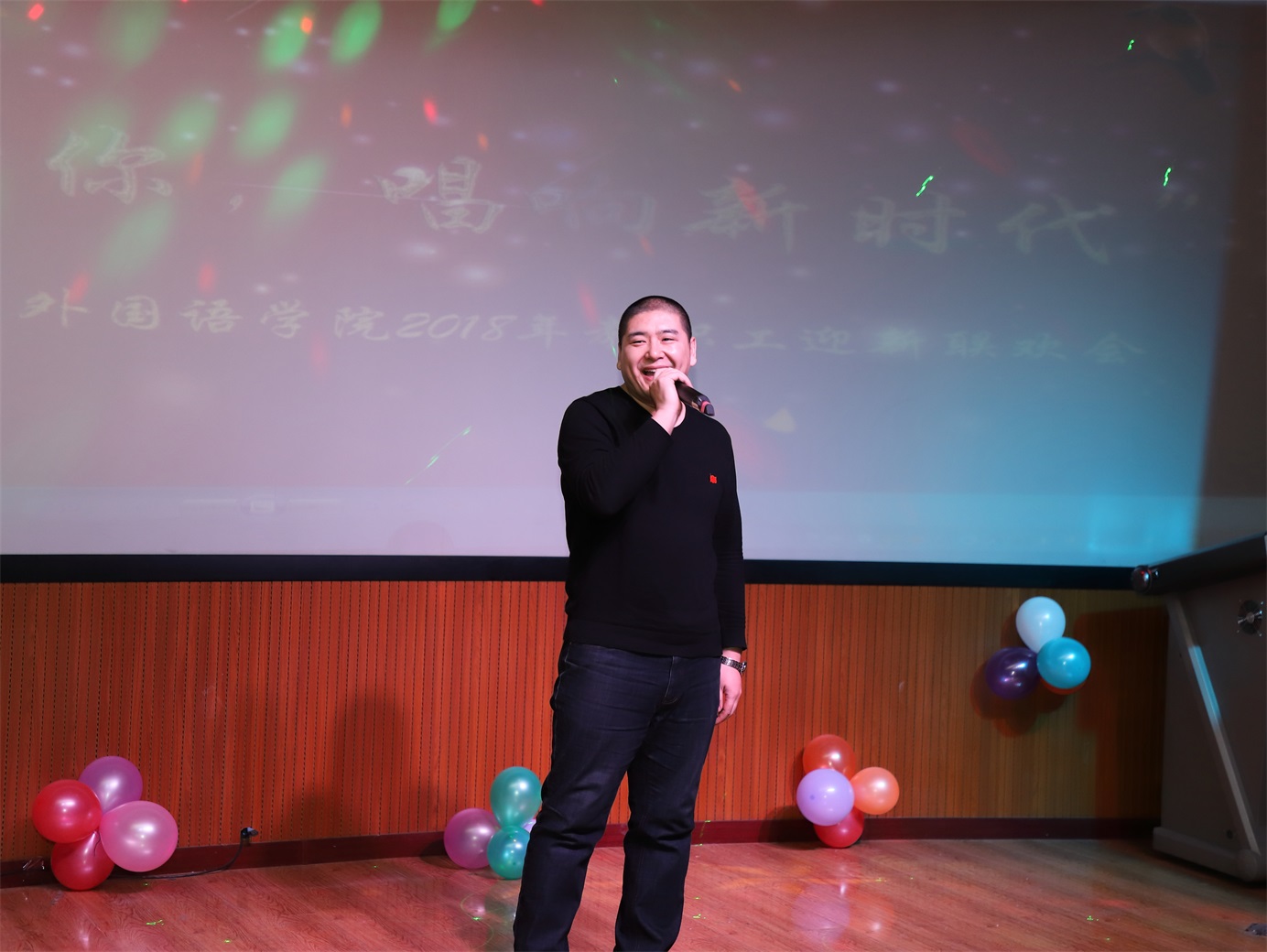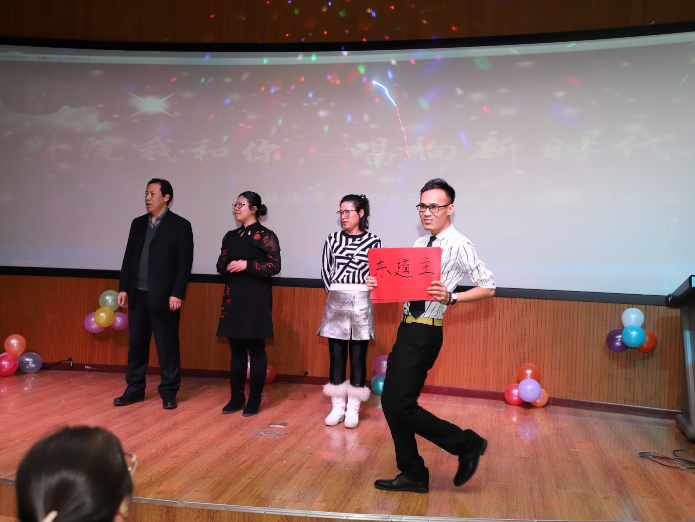 伴随着一首来自远方的《漂洋过海来看你》以及慷慨激昂的《跟我来》,新年联欢会正式拉开帷幕。由辅导员办公室带来的诗朗诵《读中国》让我们永葆“不忘初心,牢记使命”的十九大精神。院领导班子用俄、英、汉三语演绎俄罗斯经典歌曲《喀秋莎》,充分展示了外国语学院的专业特色。轻松愉快的游戏环节《正话反说》、《看这边》吸引了在场的每一位教师,将联欢会的氛围推向了高潮。教师们载歌载舞,抒唱情怀,彰显了外语人的勃勃生机。最后,全体教师齐声合唱《国家》,表达了中华儿女对祖国真切的爱,为本次联欢会画上了圆满的句号。