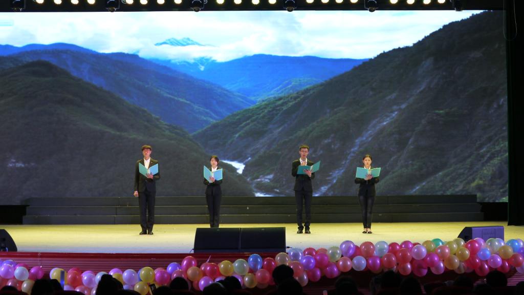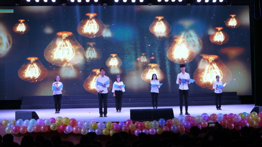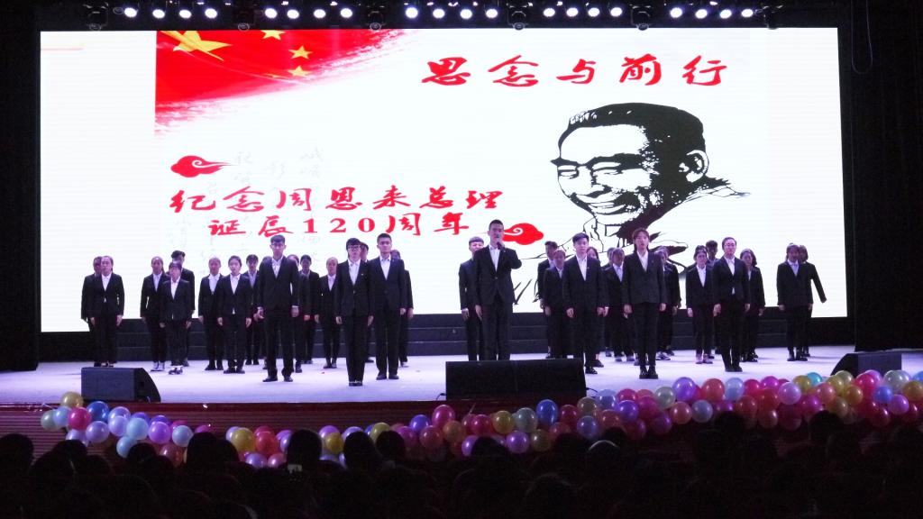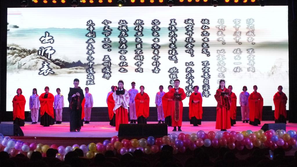 我院也特邀到来自国际教育学院的留学生们来为本场开幕式献上歌声。而由曹贺迪等带来的小品《为中华之崛起而读书》让大学生们了解了周恩来同志为中国人民谋幸福、为中华民族谋复兴、为人类进步事业而奋斗的光辉一生。最后开幕式在大合唱《我爱你中国》的歌声中落下了帷幕。歌舞、小品、特色秀等精心准备的 12个精彩的节目为观众呈现了丰富的视听盛宴。掌声和欢呼声此起彼伏,台上台下成了一片激情四溢的海洋,观众脸上的赞许是演员们尽心尽力演出最好的回报。