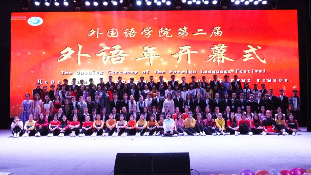 2018年4月18日14时00分,黑河学院外国语学院第二届“外语年”开幕式于明德楼大礼堂隆重召开。莅临本次开幕式的领导有教务处副处长曲兆东、外国语学院院长姜占民、外国语学院党总支书记孟繁红、副院长戈秀兰、党总支副书记常丽坤,以及外国语学院全体师生共同见证了这场视听盛宴。
