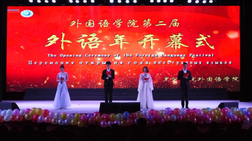 “外语年”是黑河学院外国语学院的特色品牌活动,为全校学生提供展示自我的平台,通过系列活动的举办进一步推进我院学生专业素质拓展,提高广大同学的外语应用水平。开幕式首先由“第一届外语年”的视频回顾中拉开了本届“外语年”的帷幕。视频向大家展示了过去一年里外院举办的普希金艺术节、莎士比亚艺术节和文化艺术节模块下的各种活动。