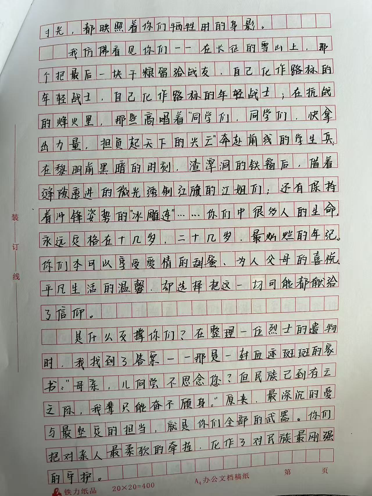 同学们在字里行间中回顾历史,感悟精神,并思考自身肩负的责任与使命,真正实现了将缅怀之情内化于心、外化于行的活动初衷。参赛作品均能紧扣主题,结合具体英烈事迹,抒发了对革命先辈的崇高敬意与深切缅怀。
