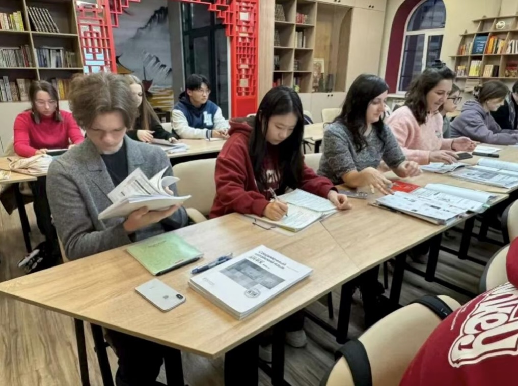 七天的实践中,外国语学院师范专业学子双线发力,收获颇丰。一方面,他们走进当地自然与人文场景,深度感受俄罗斯风土人情,在独立生活中提升跨文化适应能力,口语表达也在实景交流中得到显著提升;另一方面,学子们聚焦对外汉语教学实践,在孔子学院的课堂上充分发挥语言专业优势。儿童班的课堂上,他们以趣味游戏、互动体验为载体,让中华文化在欢声笑语中传递,极大激发了自身投身文化传播的热情;面对成人班一丝不苟钻研汉语的俄罗斯学员,他们耐心指导发音与汉字书写,在教学相长中熟练掌握对外汉语教学方法,积累了宝贵的实战经验。交流中,师范专业学子们与俄罗斯学生结下深厚友谊,为中华文化的海外传播与认同筑牢基础,更立下成为对外汉语领域骨干力量、向世界讲好中国故事的志向。