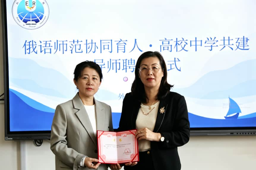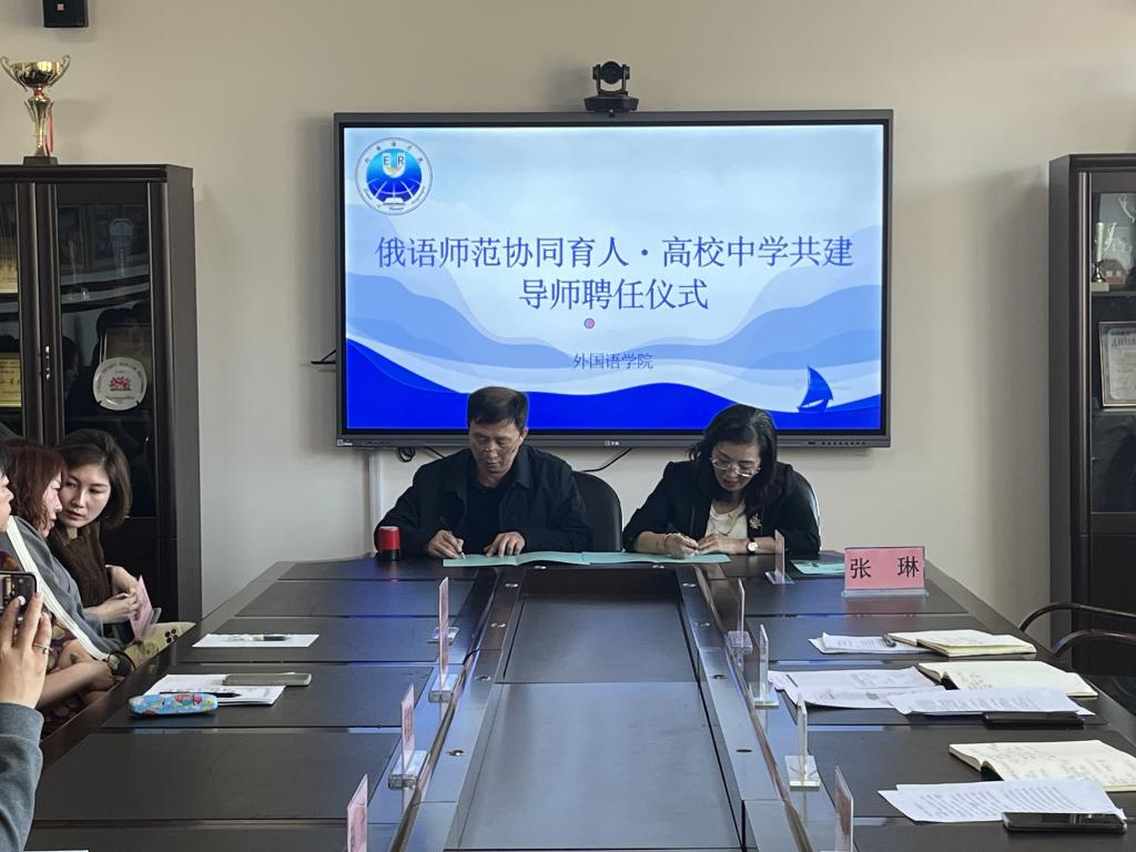 研讨会尾声,举行了校外指导教师聘书颁发仪式及实习协议签订仪式。黑河学院外国语学院为参会的一线俄语骨干教师颁发校外指导教师聘书,聘请各位骨干教师担任学院俄语专业学生的校外指导老师,助力高校人才培养与教学实践深度衔接,实现校地师资资源共享。同时,黑河学院外国语学院与黑河市第四中学、黑河市技师学院正式签订实习协议,明确了实习安排、指导责任、安全管理等相关事宜,搭建起学生顶岗实习的坚实平台,推动“双导师”制度落地见效,助力学生将理论知识与教学实践相结合,提升专业应用能力。