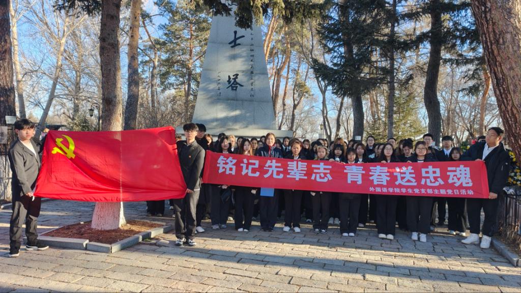为了让同学们深刻感悟革命先烈的英勇事迹与爱国情怀,铭记历史、砥砺初心,在实践活动中厚植爱国主义精神,增强青年学子的责任感与使命感,外国语学院学生党支部于2026年4月2日,在黑河市王肃公园烈士墓开展清明祭扫烈士墓主题党日活动。