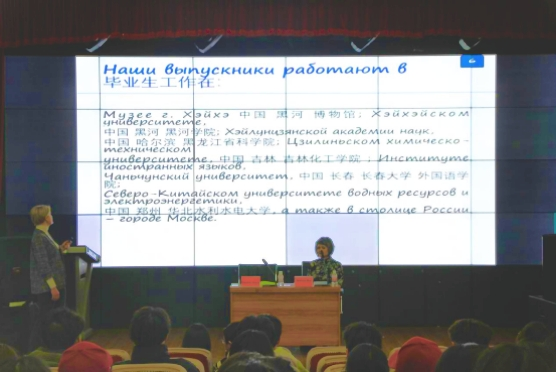 为进一步深化国际交流合作,精准服务学生海外升学需求,引导学生科学规划留学路径,2026年4 月 1 日下午,外国语学院在外语楼小剧场成功举办出国留学动员宣讲会。本次宣讲会特邀阿穆尔国立大学招生处处长雅娜、学院外语系俄罗斯学教研室主任奥丽佳担任主讲嘉宾,外国语学院副院长姜丹、学工办副主任朱红宇,辅导员侯蔓丽、贺然、赵丽玮及2022 级、2023 级、2024 级学生共同参会。